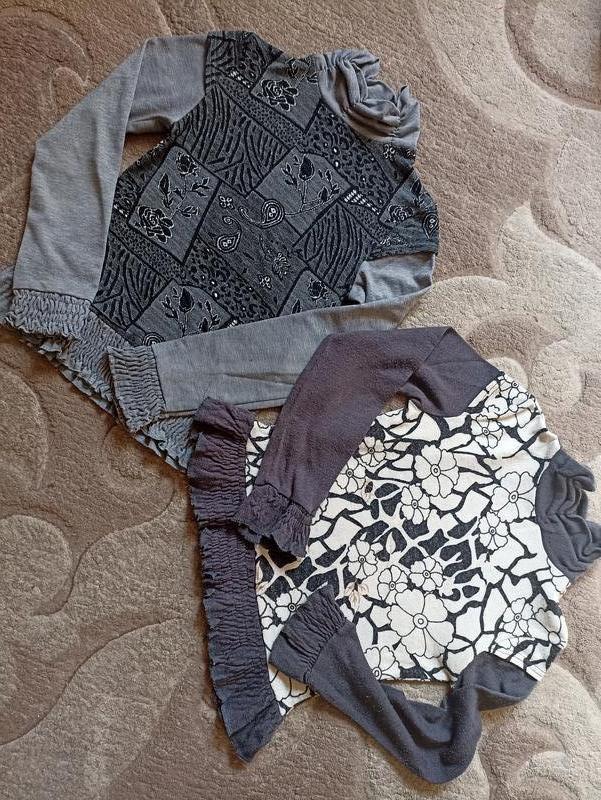 Серый, длина 50 см, ширина в плечах 33 см, ширина под руками 36 см рукав 53 см. С белым, длина 47 см ширина в плечах 34 см ширина под руками 40 см рукав 56 см. Лотом 90 грн.