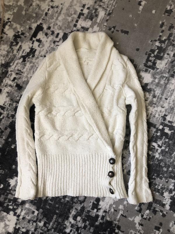 Теплая кофта для девушек 11-15 лет. В молочном цвете. Плечи 36 см, длина по спине, длина 60 см, рукав 59 см, под руками 42 см.