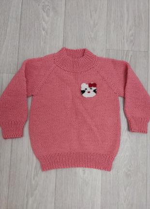 Детская вязаная кофта, свитер с Hello Kitty. Ручная работа. На 3-4 года. Состояние новое. Без дефектов. Длина по спинке 45 см. Длина по спинке от подмышки 28 см. Длинна рукава от подмышки 27 см. Обхват груди 66 см. Цвет: розовый, как на фото. Материал: пряжа, 50% шерсть, 50% акрил. Пряжа очень мягкая. Невероятно красивый и интересный узор. Новый. Не одевался. Невероятно красивый, стильный, модный, яркий, легкий и очень теплый.