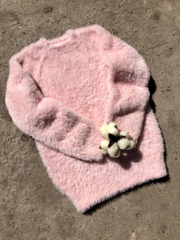 Детский свитер, выполненный вручную из искусственной норки. Не колючий, гипоаллергенный, очень мягкий и приятный к телу. Цвет - нежно розовый. Размер 122.