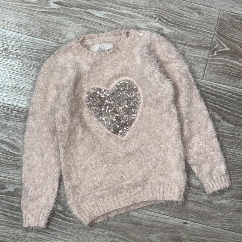 Мягкий джемпер травка с сердечком из пайеток. 2-3 года YD Длина 42. ПОГ 31. Рукав 41