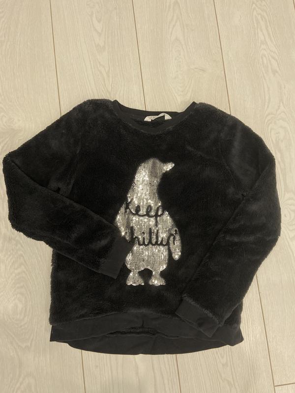 Свитер hm размер указан на 10-12 лет (146-152 рост), но подойдет и на меньших Рукав-52 Длина изделия-54 по спинке ( спинка удлинена) Длина по лицевой стороне-45