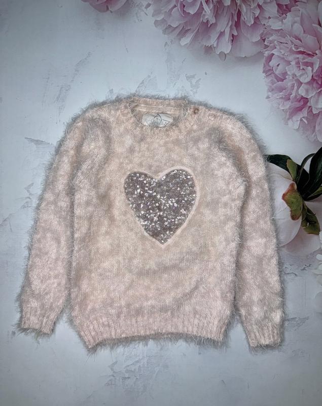 Мягкий джемпер травка с сердечком из пайеток. Состояние новой вещи 2-3 года YD Длина 42. ПОГ 31. Рукав 41