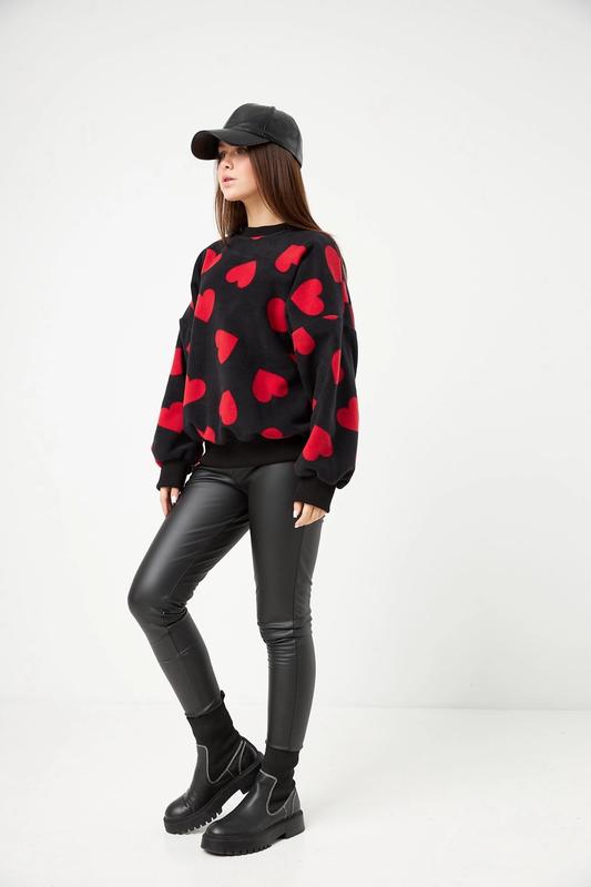Свитшот сердечки Красивый и стильный принт ткани ткань турецкий флис манжеты измельченная Теплый и мягкий КАЧЕСТВО ЧУДОВА!! РЕКОМЕНДУЮ!!! 140-2шт 146-2шт длина/пог/рукав от горловины 140/54/57/59 146/55/59/61 152/57/60/63 158/59/61/66 164/62/63/71