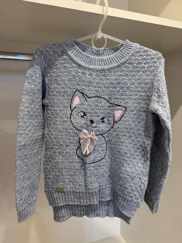 Теплый детский свитерик с котиком. Размер 122 - ориентировочно 6 лет. Мягенький и приятный к телу. Стан идеален.