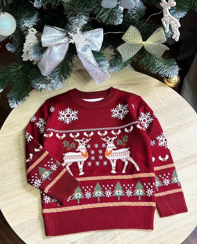 Новогодние свитерики. Качество очень хорошее. Размеры: 100-длина 39 см, ширина 28 см, рукав 32 см (2шт) 110-длина 42 см, ширина 30 см, рукав 36 см (2шт) 120-длина 44 см, ширина 32 см, рукав 37 см (2шт) 130-длина 47 см, ширина 34 см, рукав 40 см (2шт) 140-длина 49 см, ширина 36 см, рукав 43 см (1шт)