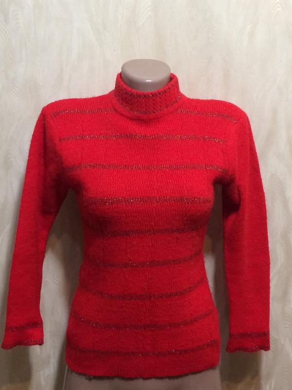Шерстяний червоний светр в ідеальному стані. Розмір написаний , дивіться виміри ПОГ 38-42см ПОТ 35-39см ПОБ 38-42см довжина по спинці від лінії плеча 53см довжина рукава 48см Надсилаю Новою поштою, укрпоштою. 5766