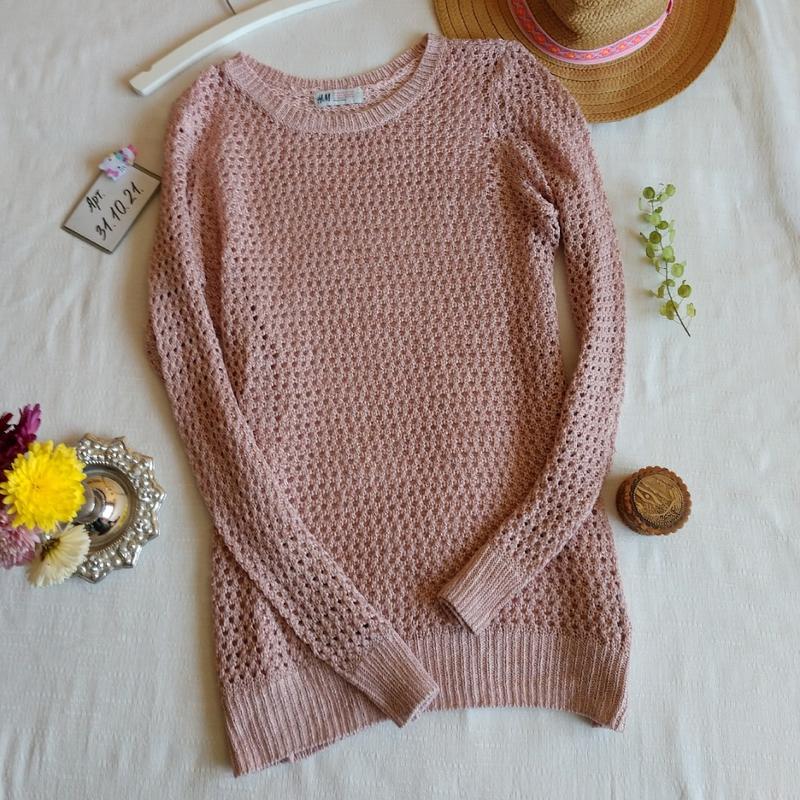 красивый розовый ажурный вязаный мирер с люрексовой нитью в очень хорошем состоянии h&m 12-14 лет под мышки 46 тягну до 63 легко рукав плеча 62 см почти 63