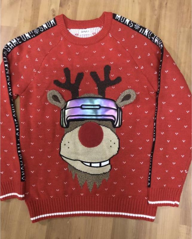Дуже красивий новорічний светр з оленем. Ніч світиться ) Довжина 59см обхват 42 см довжина рукава від шиї 63см