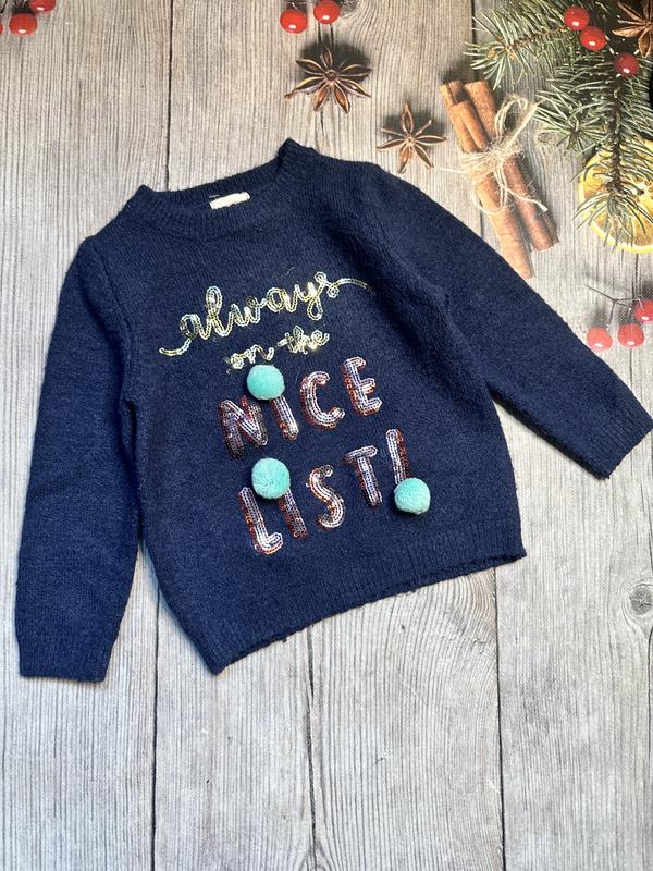 Новогодний свитер на девочку 2 3 года длина 37 см ширина 30 см рукав 32 см