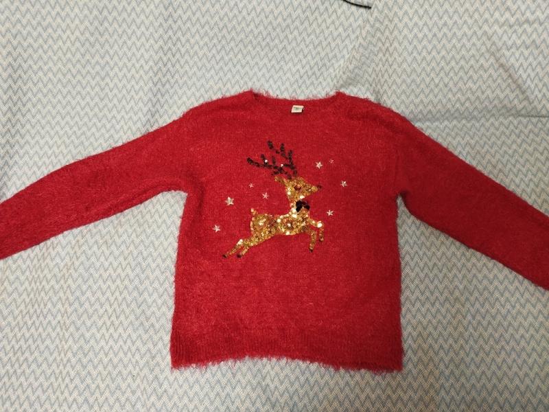 Свитшот мягкий, праздничный. отличный вариант для фотосессии. Олень золотистый, в пайетках. Рост 122 см. Замеры: длина по спинке 48 см. длина рукава 38 см. плечи 37 см. пог 39 см.