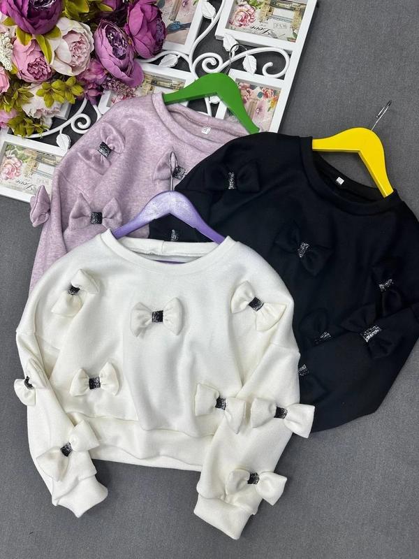 104-134- 590 грн 140-164- 660 грн отправка 1-5 дней Ну очень красивый и нежный свитшот" Бант". 😍😍😍 ткань: королевская ангора. не колется. нежная к телу. бантики пришиты. Замеры +-1-2см(рукав от горловины, заплещенное приспущенное) Свитшот ✨ 🎄104_длина 34см,рукав 52см 🎄110_длина 35см,рукав 54см 🎄116_длина 37см,рукав 55см 🎄122_длина 38см,рукав 56см 🎄128_длина 40см,рукав 58см 🎄134_длина 42см,рукав 60см ❄️140см _длина 44см,рукав 61см ❄️146см _длина 46см,рукав 63см ❄️152см _длина 48см,рукав 65см ❄️158см _длина 50см,рукав 67см ❄️164см _длина 52см,рукав 69см Через кнопку купить не оформляю, так как под заказ.
