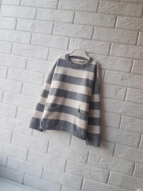 Полосатый свитер с карманчиками MANGO р124, состояние хорошее Замеры длина 45см, ширина 42см, рукав от горловины 52см