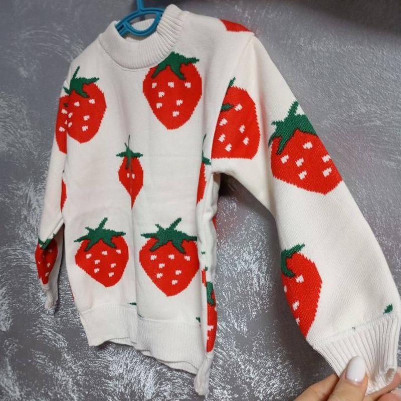 Свитер для девочек на флисе Цвет белый Размер 110, 120, 130 Производитель Китай Милые свитера для девочек, мягкие и удобные, вязаные с маленькими клубничками, с длинным рукавом