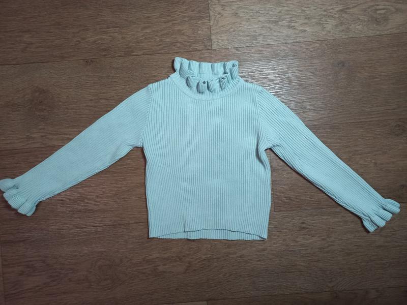 4 года, 104-110 см, укороченный свитер для девочки, голубого цвета в нормальном состоянии. замеры на фото