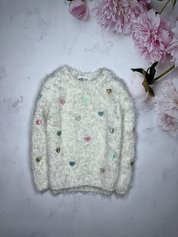 Свитерок травка сердечки Состояние идеальное без нюансов 🏷H&M 4-6 лет/110-116 р Длина 38/42. ПОГ 34. Рукав 38-45