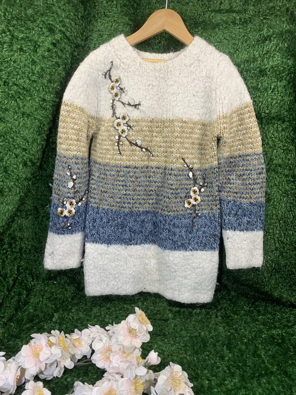 Плотный теплый свитер с апликацией Twinset на девочку из Европы, р.110-128 на 5-8 лет Н1607 Мягкий и теплый шерстяной свитер из Италии. Красивая цветочная апликация Полуобхват груди 36 см. Плечи 27 см. Рукав 47 см. Низ 36 см. Длина 55 см. Состояние: б/у, но в хорошем состоянии (см. фото). Отправка ежедневно! - по полной или минимальной предоплате - на сайте