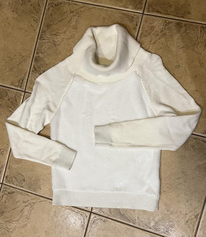 Красивый свитер в хорошем состоянии.Передняя часть свитера как плюшевая .Манжеты и резинка внизу свитера блестит .Полк обхват груди 36-37 см ,длина рукава от горловины 57 см ,длина свитера 47 см