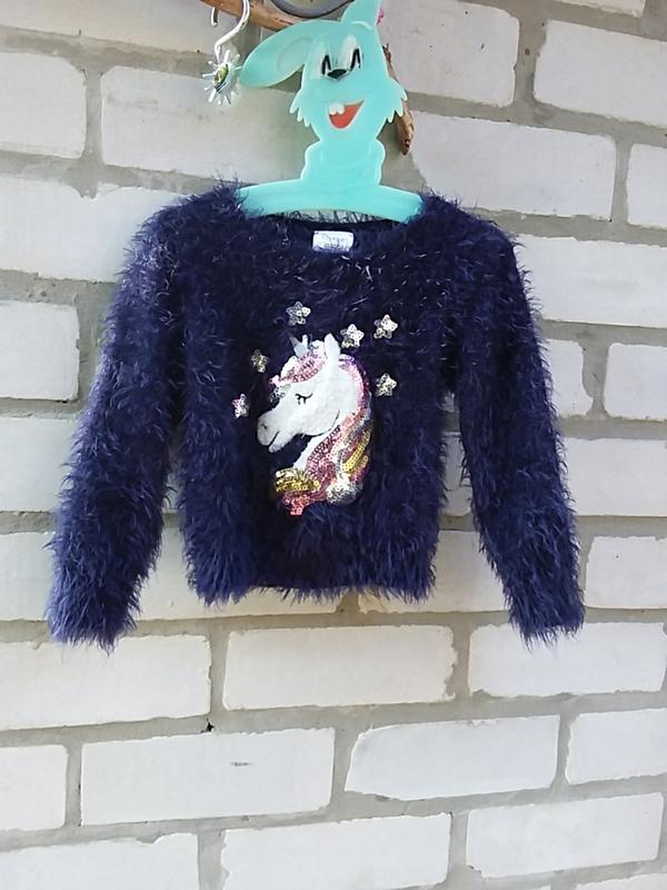 3-4р, травка, апликация единорог,паэтки, длина 35, пог 31, рукав от шеи 41, колир темно синий, насичений, стан дуже хороший