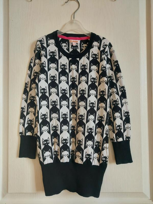 Детское удлиненное платье свитер принт кота bluezoo Возраст 5-6 лет