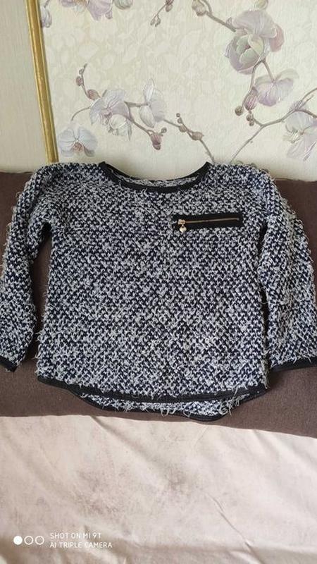 Стильный итальянский свитер на девочку, рост примерно 116. Сзади немного удлинен. Длина спереди 41 см, сзади 44 см. Ширина з6 см. Длина рукава от плеча 33 см.