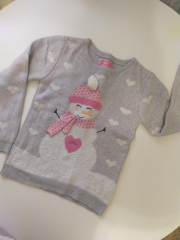 Свитер новогодний серого цвета с снеговиком, состояние идеальное