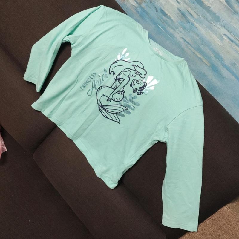 Кофта бренда M&S бирюзового цвета с принтом Ариэль на возраст 5-6 лет на рост 116.. Состояние новой вещи.