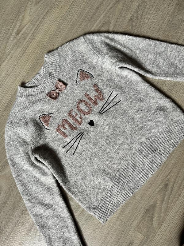 Свитер вязаный серый с котиком primark 7-8 лет р.128