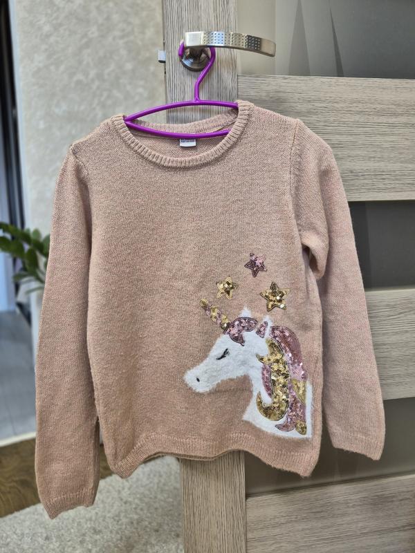 Свитер в красивом состоянии. теплый, приятный к телу. украшен красивой единорожкой из пайеток. пог 41 см, длина 54см, рукав 53см.