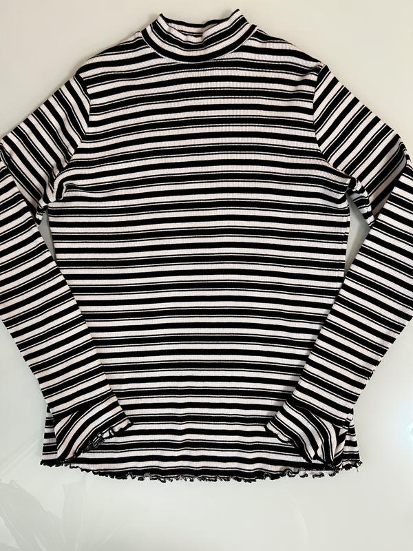 Код: 1030 Дитячий гольф, фірми Marks & Spencer (M&S) на дівчинку. Зручний дитячий гольф у чорно-білу смужку від Marks & Spencer. Виготовлений зі 100% м’якої бавовни, приємної до тіла. Має довгі рукави, горловину-стійку та легкі рюші по краях. Підходить для щоденного носіння у школу чи на прогулянки. Характеристики: Бренд: Marks & Spencer (M&S) Країна виробництва: Бангладеш Склад: 100% бавовна Колір: Black Mix (чорно-білий) Тип виробу: гольф / лонгслів Рукав: довгий Горловина: стійка Розмір: UK 14 / EUR 42 — орієнтовно на дитину 11–13 років Б/у стан нового Довжина 56 см, в плечах 31 см, в грудях 42 см, довжина рукава 55 см Ціна: 180 грн