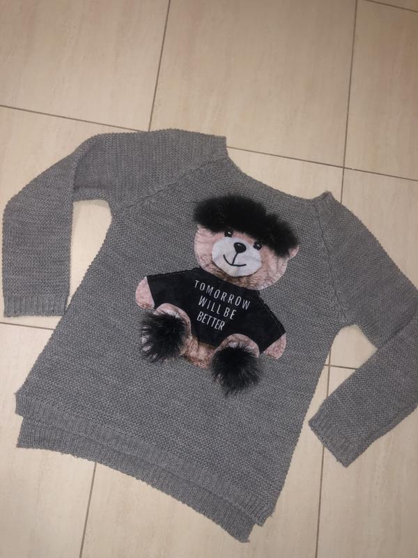 Кофта з кумедним ведмедиком , брови та лапки оздоблені хутром , на вік 8-9 років , дивитись заміри.