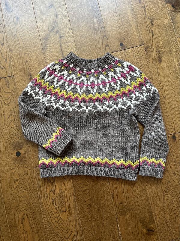 Стильний, теплий і неймовірно затишний. Светр в'язаний вручну спицями. Візерунок лопапейса. Склад: 100% вовна. Стан нової речі. Підійде орієнтовно на вік 3-8 років. Заміри зроблю