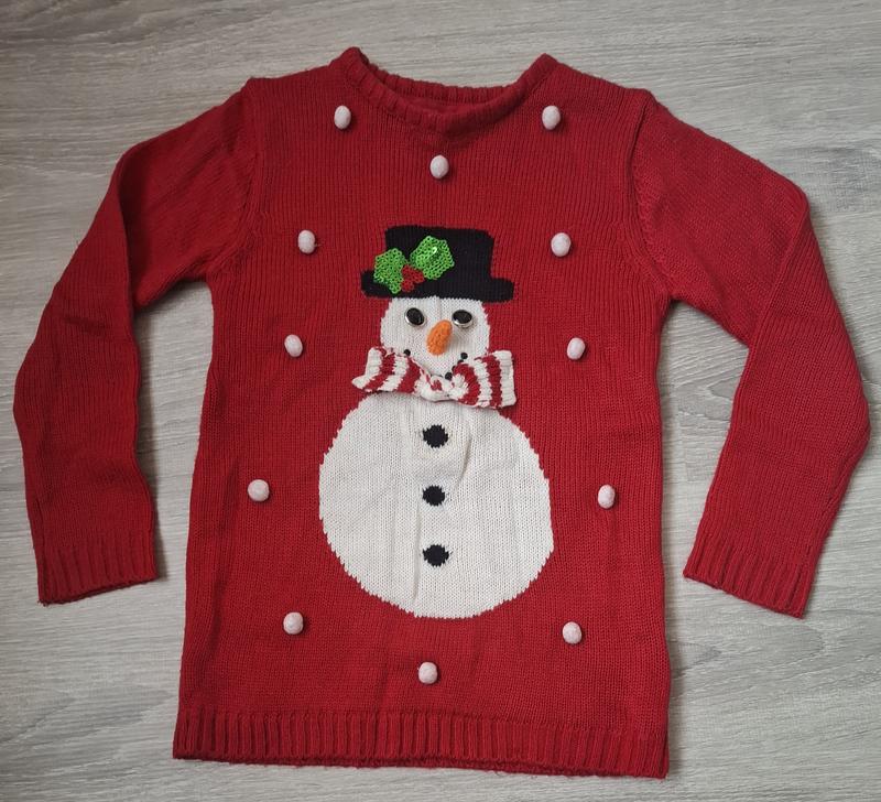 Світерок дитячий, новорічний::I♡Christmas.,красивий сніговичок( носик,очки,паєтки) Розмір: 8-9 рочків Ріст: 134см Плечи-31 Пог-35 Пот-35 Довжина-55 Рукав-47 100%акріл