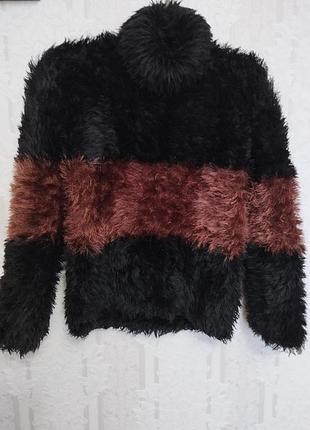 Теплый свитер травка с высоким горлом.Зад немного длиннее. Цвет- черный, коричневый. Замеры: длина -47/52 пог-42 см ширина плеч -46 см длина рукава от горловины -69 см