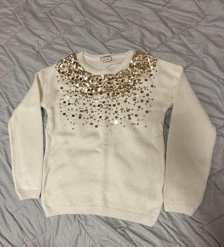 Светр теплий святковий, прикрашений золотими пайетками На 9-10 років на зріст 134-140 см