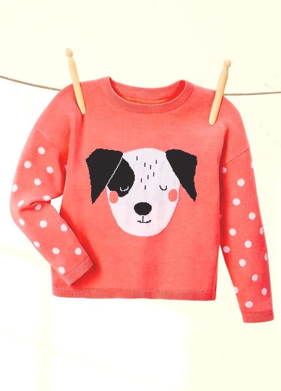 Замеры: Размер 98-104: ПОГ-32 см, длина-36 см, рукав от горловины-44 см. Размер 110-116: ПОГ-35 см, длина-40 см, рукав от горловины-48 см. ПРОДАН Вязаный свитер из мягкого хлопкового трикотажа от бренда Lupilu. Великий принт спереду. Рукави в горошок. Ребристые манжеты на вырезе и подоле. Естественный комфорт благодаря органическому хлопку.