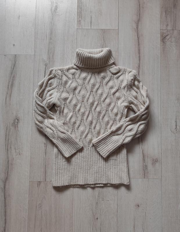 Бежевый свитер на девочку. Имеет длинные теплые рукава и горловину, есть отверстия для пояса. Размер 12/152-158
