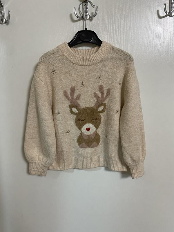 Дуже красивий і приємний на дотик. Розмір 4-5; зріст 110. Довжина по спинці від шиї 40,5; довжина рукава від шиї 10,5+36; ширина під руками 35,5