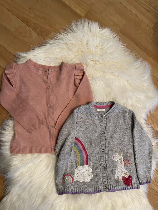 Светри розмір 2-3 роки, в ідеальному стані.Ціна за два светрики.На рожевому пише 1,5-2 але по факту це на 2-3 рочки.