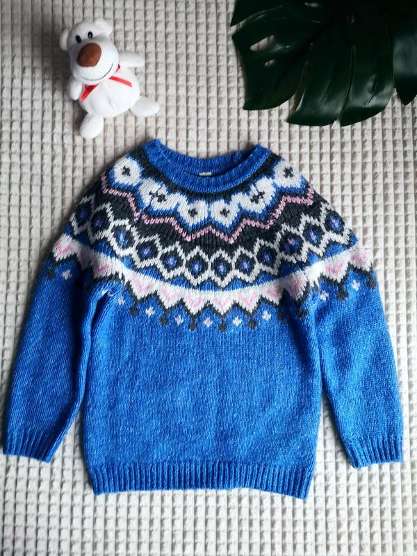 Яскравий теплий светр на дівчинку. Заміри : довжина 53, ширина 36, рукав від горловини 50.