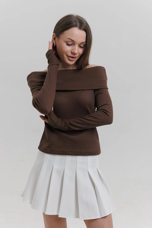 Лонгслів з відкритими плечима «Мітинка»😍😍😍 Тканина-трикотаж «вафелька» ЯКІСТЬ СУПЕР! ПОВНОМІРНИЙ довжина від плеча/рукав/пог 140 - 34/52/32 146 - 36/54/33 152 - 37/56/34