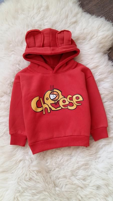 Классный теплый свитшот с накаткой. Внутри на флисе. Достаточно плотный. Капюшон декорирован ушками. Рукава и низ на эластичных манжетах-резинках. Фасон свободный, с приспущеными плечами. Цвет немного более приглушенный, чем на фото. По бирке идёт на 3-4 годика (размер 104). Может немного большемерить, поэтому ориентируйтесь, пожалуйста, на замеры: ▪︎ длина - 40 см; ▪︎ плечи - 42 см; ▪︎ ПОГ - 39 см; ▪︎ длина рукава от плечевого шва - 28,5 см, от подмышки - 26 см. Состав: 57% полиэстер, 41% хлопок, 2% другие материалы.