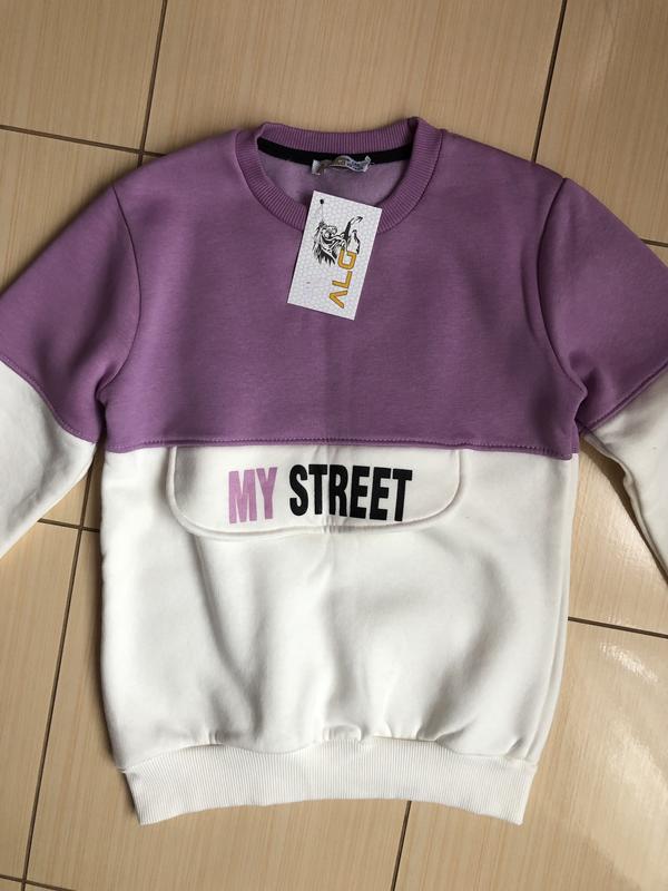 Стильный Свитшот, новый с этикеткой, утепленный Длина 51 см, длина рукава 47 см, обхват груди 74 см, ширина плеч 33 см
