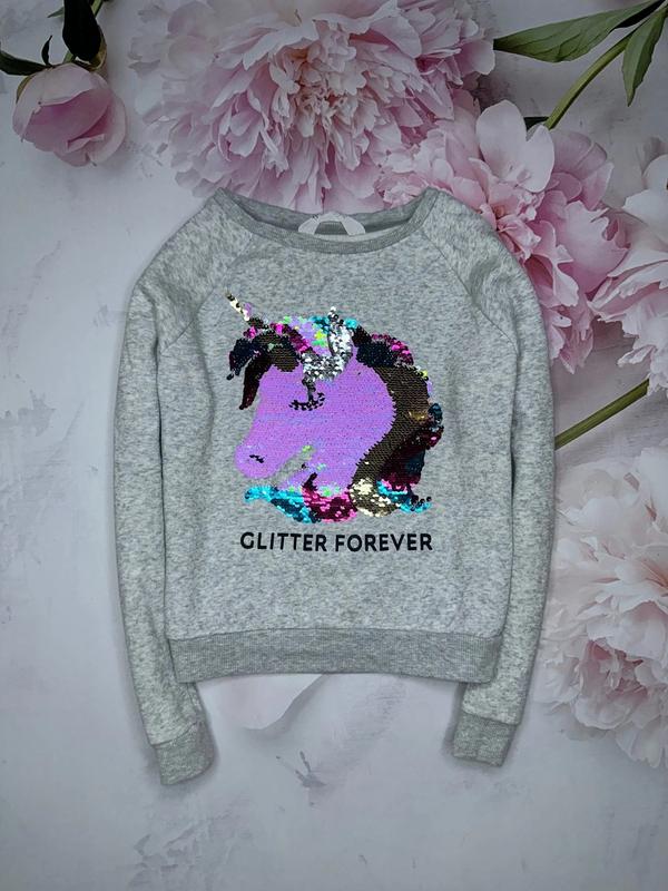 свитшот на баечке. Пайетки перевертыши состояние отличнейшее 🏷️H&M 8-10 лет длина 46. ПОГ 43. рукав от шеи 53
