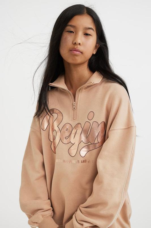 H&M_з начосом Толстовка оверсайз із начосом усередині та принтом спереду. Високий комір і застібка-блискавка зверху, сильно занижена лінія плеча та трикотажна гумка на комірі, манжетах і знизу. ❕НО бирці 23 євро 🏷️134-140, 🏷️134-140 🏷️146-152, 🏷️146-152 🏷️158-164, 🏷️158-164 📌134-140 Довжина 54, рукав від горла 62,5, груди 46 📌146-152 Довжина 58, рукав від горла 70, груди 53 📌158-164 Довжина 65, рукав від горла 75,5, груди 54 🛍️ОТПРАВЛЯЮ 2-РАЗА В ДЕНЬ 🚀НОВА і 🚜УКР 💵ПІСЛЯ ПОВНОЇ ОПЛАТИ 🍿ТОРГА НІ
