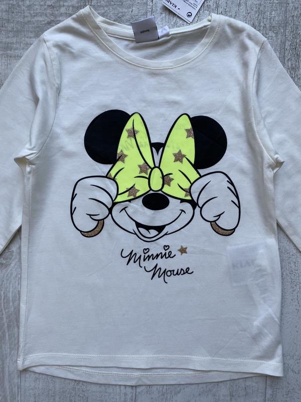 Реглан Minnie Mouse Disney Kiabi. Бант светится в темноте!🤩 100% хлопок. Размер 5 лет, рост 108-113см. Замеры: длина 44см, ширина 31см, рукав от плеча 39,5см. Полная цена 6 евро, сейчас действует акционная цена! ‼️Отправка каждый день🙌 🚛Доставка Новой почтой, укрпочтой. 💰 Оплата на карту Приватбанка, безопасная оплата. Смотрите и другие мои объявления. Много вещей бренда Kiabi по доступным ценам. Каждый день добавляю товар. Подписывайтесь, будьте в курсе новинок!
