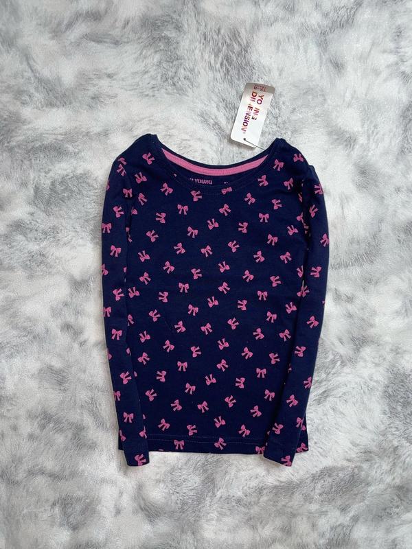 лонгслив реглан Цвет темно-синий, бантики розовые Новый 3-4 года YD длина 39. ПОГ 29. рукав 36