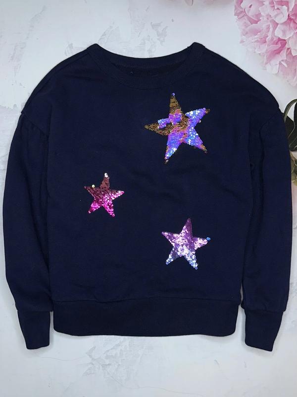 Свитшот со звездами Пайетки интерактивные Состояние идеальное 🏷️Gap 6-7 лет Длина 44. ПОГ 40. Рукав от шеи 52