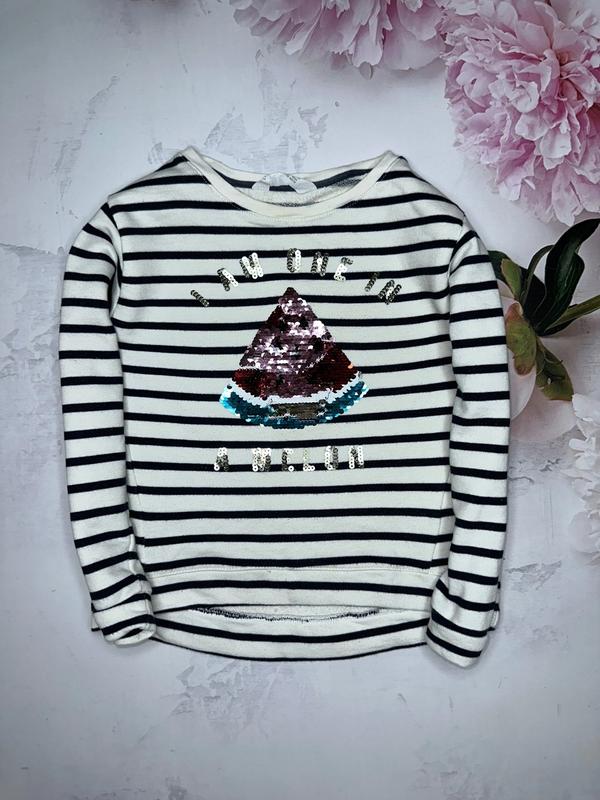 Свитшот с арбузиком Пайетки интерактивные Ткань трехнить петля Состояние идеально 🏷️H&M 6-8 лет Длина 41/46. ПОГ 36. Рукав от шеи 48