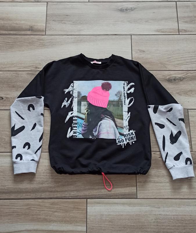 Реглан для девочки, состояние очень хорошее. Замеры: длина 51 см., пог 43 см., длина рукава от горловины 62 см. На фото видно, что на одном рукаве есть чуточку белая краска, но на сером фоне незаметно.